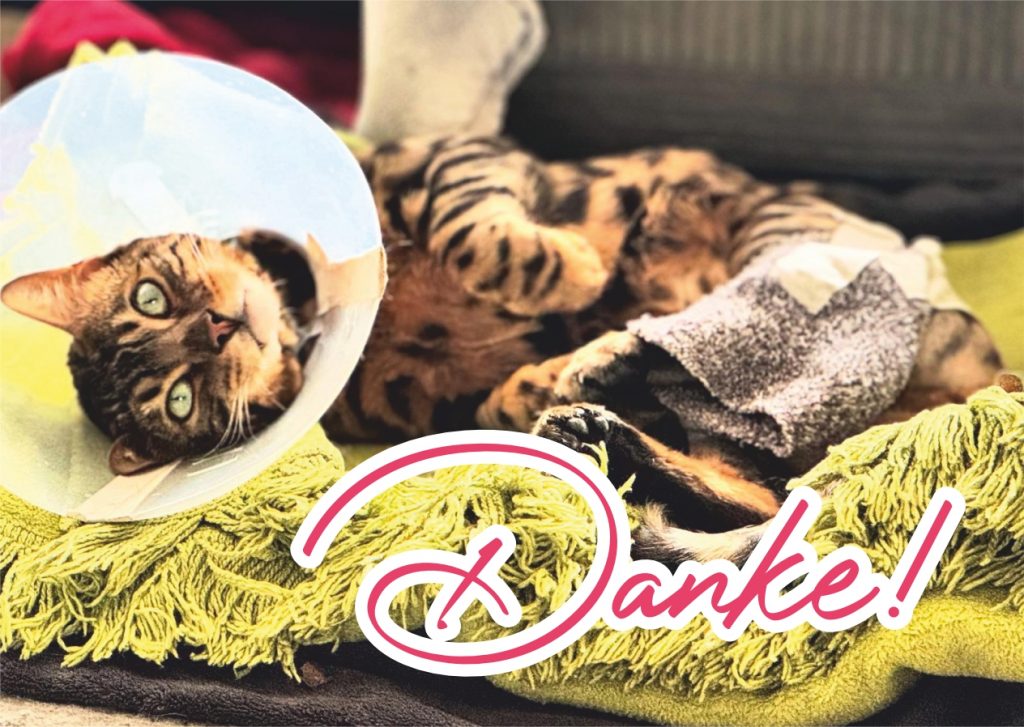 Uns blutet das Herz, wenn Nando miauend am Fenster sitzt und so gerne raus in die Sonne möchte und einfach ein bisschen im Garten spielen. Man kann es ihm einfach nicht erklären, dass er diesen doofen Halskragen tragen muss und eben nicht spielen, nicht springen und toben darf – und das noch über mehrere Wochen.