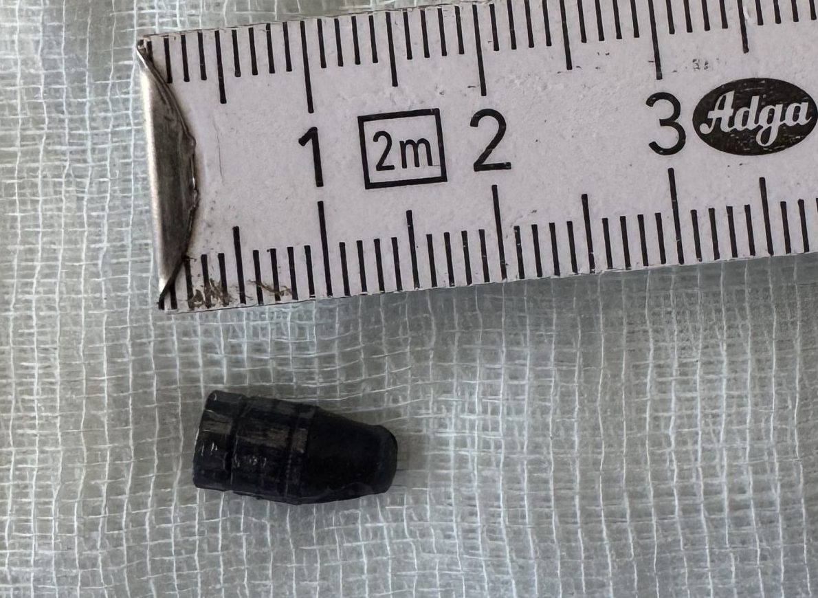 Am Mittwoch wurde ich dann wieder abgeholt und durfte nach Hause. Echt blöd mit so einem Trichter auf dem Kopf. Herrchen ist dann auch gleich zur Polizei und hat Strafanzeige und Strafantrag gestellt, das Projektil und ein paar Bilder der Polizei übergeben.