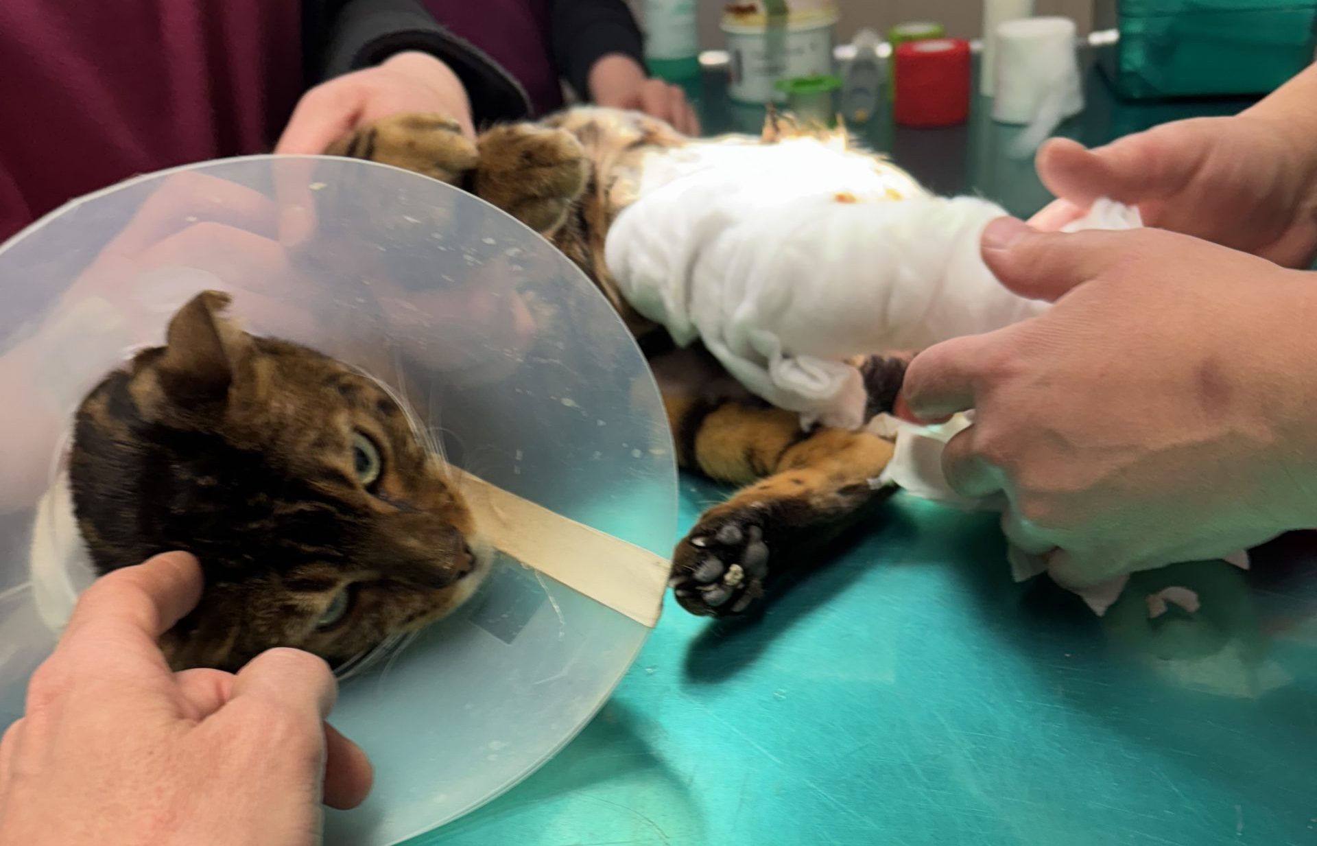 Ich musste jetzt alle zwei Tage zum Verbandswechsel und zur Wundkontrolle. Es war für mich und auch für meine Zweibeiner immer eine sehr große Belastung, wir wussten ja nie, wie es unter dem Verband aussieht und hatten wirklich Angst, dass die Wunde nicht heilt.